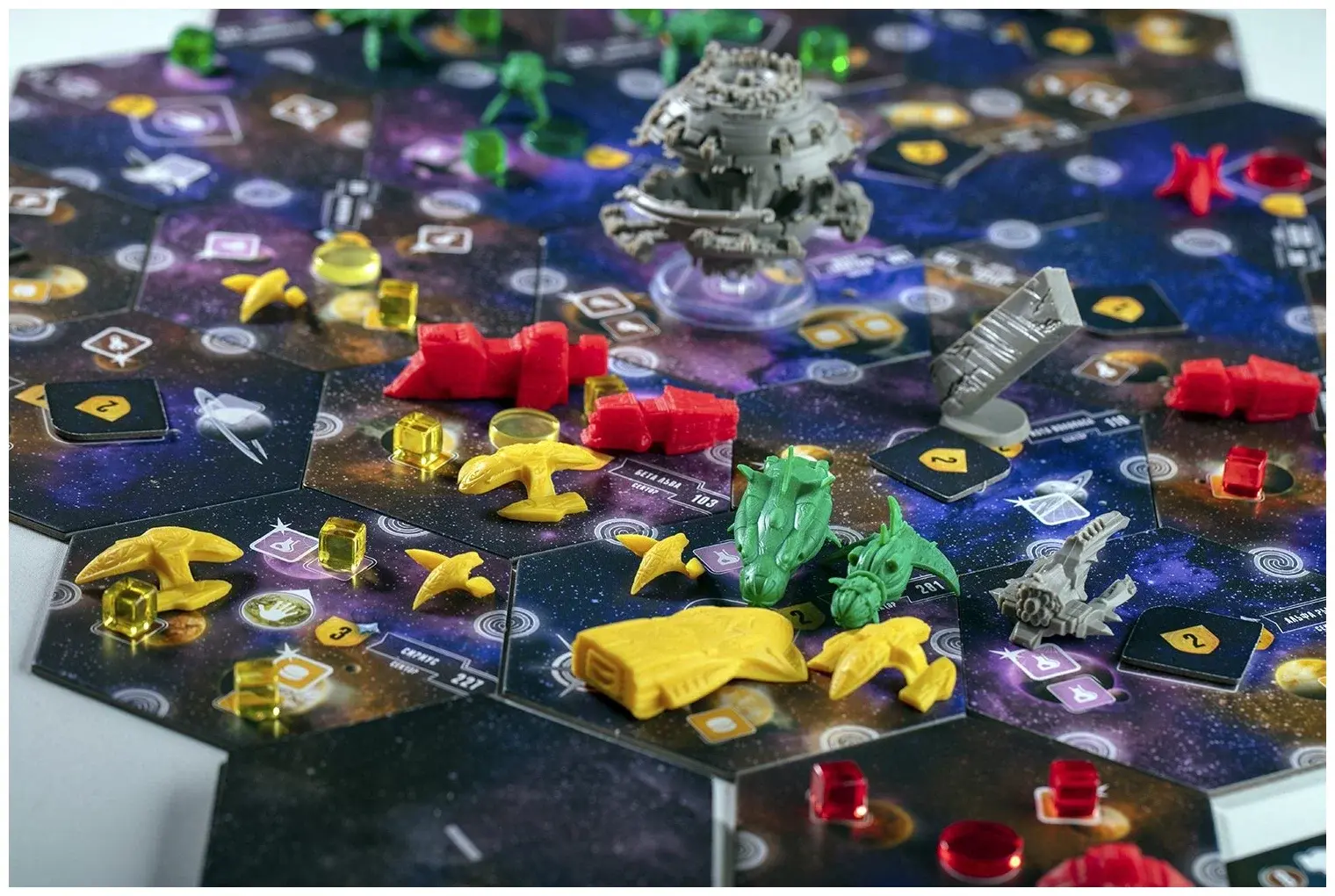 Заядлые настольщики любят большие игры, и большие игры сделаны именно так, чтобы их можно было любить. В них огромное количество шикарных компонентов, глубокий игровой процесс и возможность разыгрывать по-настоящему эпические события. Одна из таких игр – «Eclipse. Second Dawn for the Galaxy / Eclipse. Второй рассвет галактики».