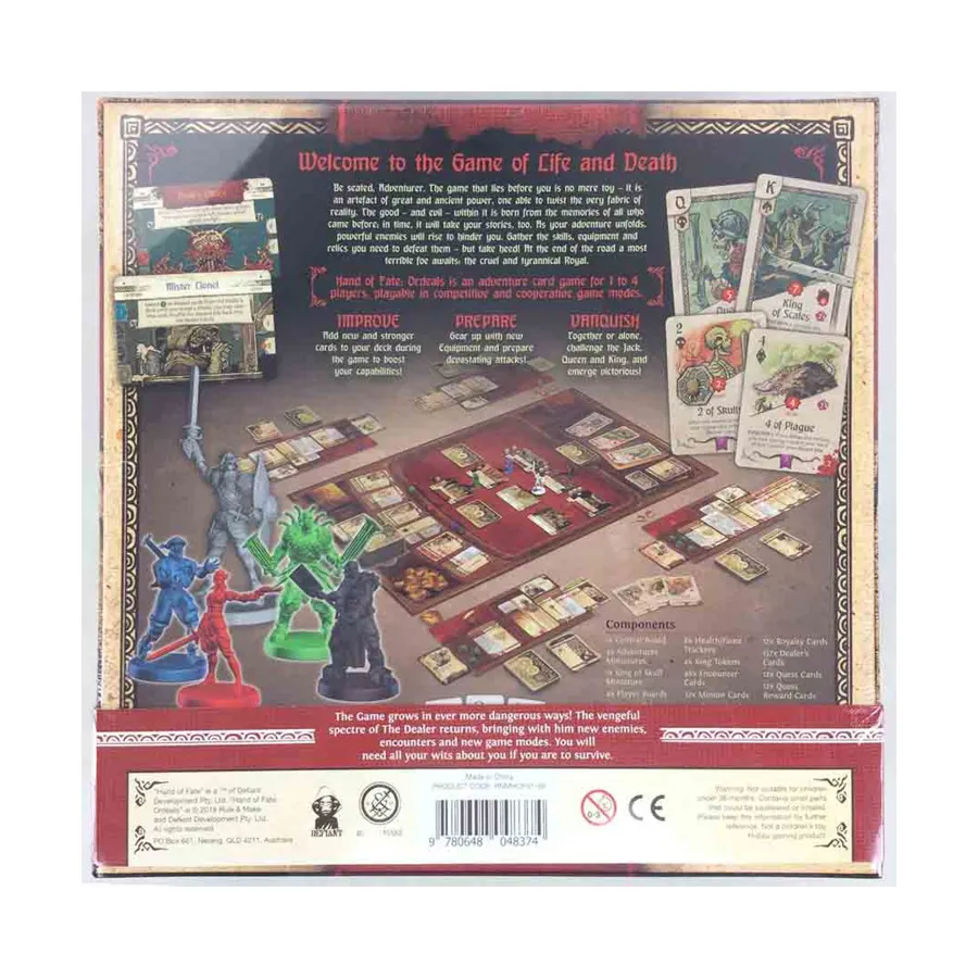 В настольной игре «Hand of Fate. Ordeals. Special Edition» вы вступаете в схватку, имея лишь ржавое оружие и самые элементарные навыки. С таким не внушающим надежд набором вам предстоит пройти по шагам своего прошлого, исследовать бескрайние земли королевства, оттачивать свои способности, перехитрить противников и уничтожить величайших врагов.