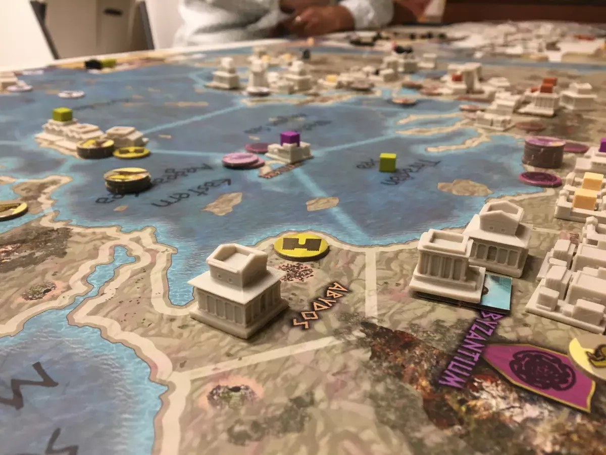 Настольная игра «Hellenica. Story of Greece» – это 3,5х (да, не совсем 4х, от Explore, Expand, Exploit, Exterminate, или «изучай, расширяй, эксплуатируй, уничтожай») стратегическая цивилизационная игра. В ней игроки возглавляют один из семи начинающих городов-государств – Афины, Спарта, Коринф, Троя, Византия, Коркира и Фивы – стремящийся завоевать власть и доминировать в своём регионе.