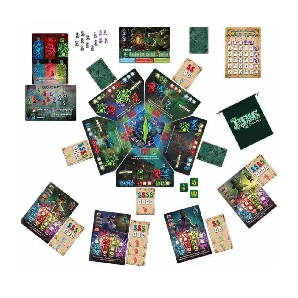 Настольная игра «Tiny Epic Cthulhu» сочетает в себе bag-building (как колодостой, только с миплами/жетонами в мешочке) и push your luck (рискуй, чтобы выиграть), с классическими элементами стратегии. Каждый ход требует тщательного планирования и координации с другими игроками.